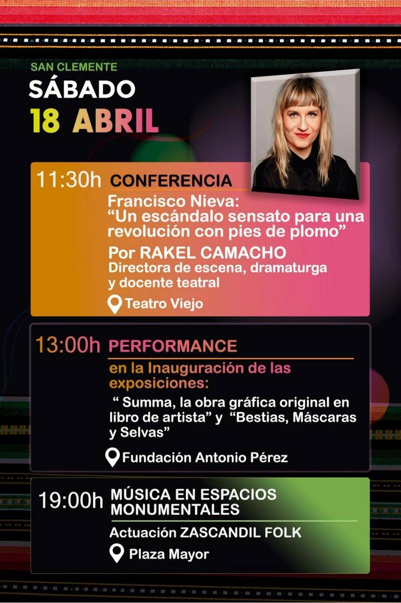 - 11:30 h: Conferencia sobre Francisco Nieva a cargo de Rakel Camacho (Teatro Viejo)