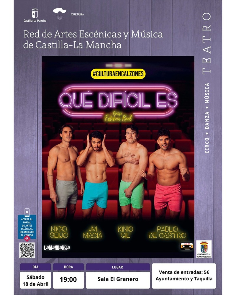 El teatro llega a Villanueva de la Jara el sábado 18 de abril con la representación de “Qué difícil es”, en la Sala El Granero a las 19:00 horas.