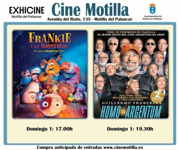 El domingo 1 de febrero, el Cine Motilla ofrece doble sesión para cerrar el fin de semana con una propuesta cinematográfica variada. A las 17:00 horas se proyectará la película familiar Frankie y los monstruos, una opción ideal para los más pequeños y para disfrutar del cine en familia. Y por la tarde, a las 19:30 horas, llegará Homo Argentum, protagonizada por Guillermo Francella, uno de los grandes éxitos del cine argentino de los últimos años.