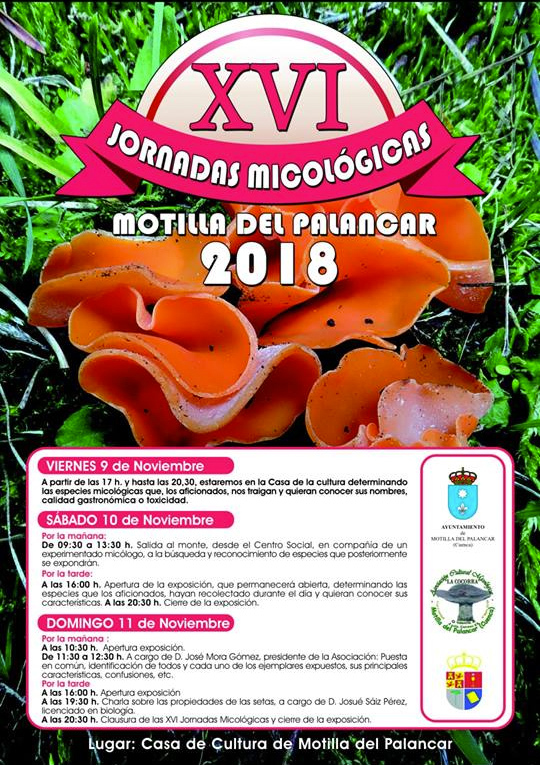 Durante los próximos días 9, 10 y 11 de Noviembre se iba a celebrar en la Casa de la Cultura de Motilla del Palancar las XVI Jornadas Micologicas.