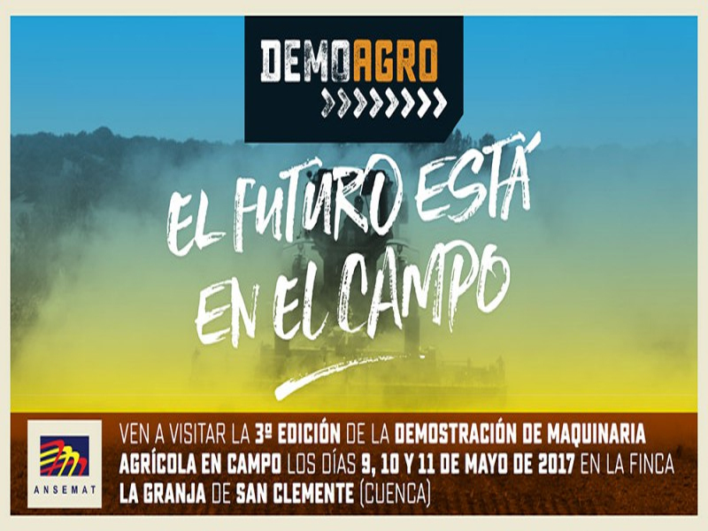 La Feria Internacional Demoagro 2017, que se celebrará en San Clemente los días 9, 10 y 11 de mayo, ya "calienta motores", tal y como asegura el Consistorio manchego en nota de prensa. Así, aseguran que el sector agrícola de todo el país "se acercará hasta la localidad para conocer las novedades de más de 100 marcas nacionales e internacionales de maquinaria para el campo, además de patrocinadores y marcas colaboradoras".