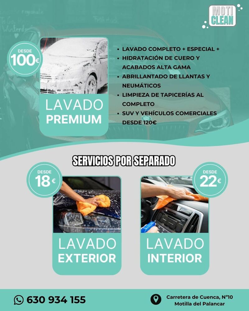 Además, Moti Clean ofrece servicios individuales desde 18 € para el lavado exterior y desde 22 € para la limpieza interior.