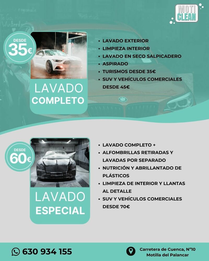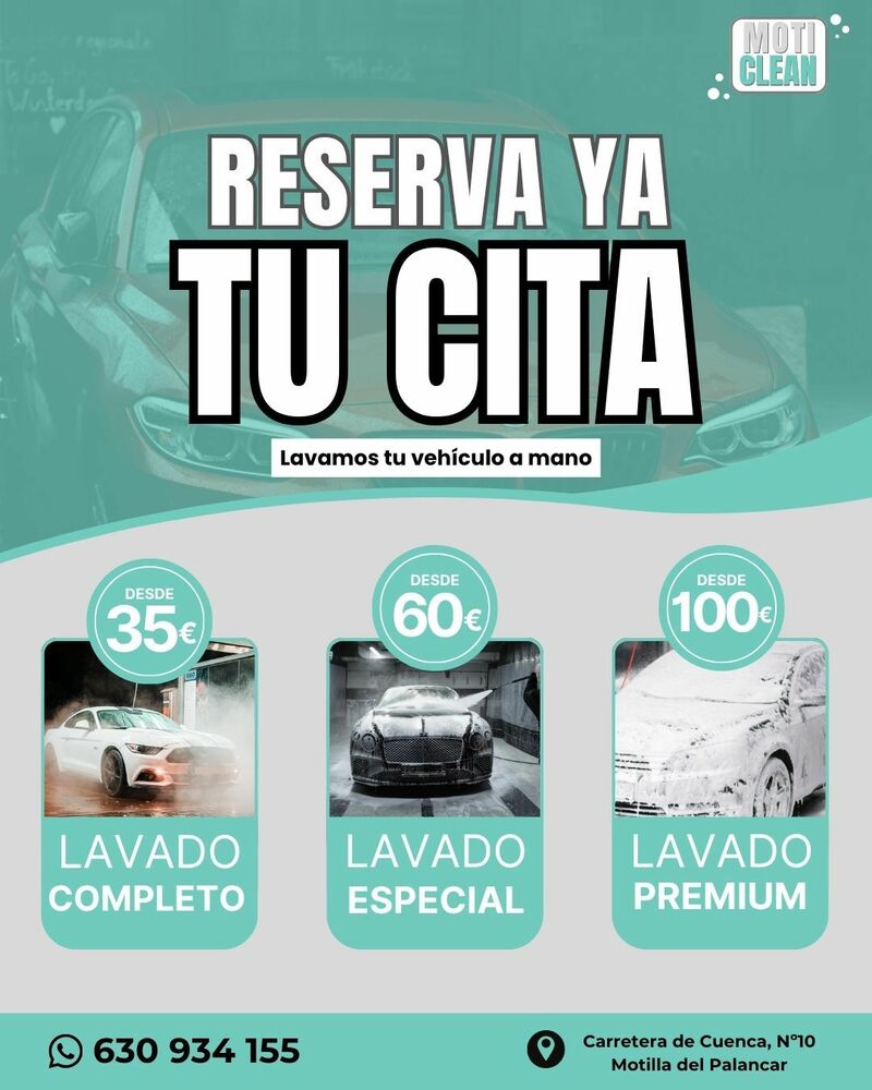 Motilla del Palancar suma un nuevo servicio de limpieza de vehículos con la apertura de Moti Clean, un centro especializado en lavado a mano que ofrece diferentes niveles de limpieza y detallado. La empresa, ubicada en la Carretera de Cuenca, número 10, apuesta por un cuidado minucioso y personalizado para cada tipo de vehículo.