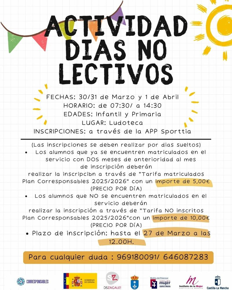 El Ayuntamiento de Motilla del Palancar ha anunciado la puesta en marcha de una actividad para los días no lectivos prevista para finales de marzo y comienzos de abril, con el objetivo de ofrecer una alternativa de ocio y cuidado para niños y niñas durante estas jornadas sin actividad escolar.