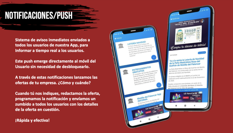 ¿Quieres conocer más detallado como funciona el sistema de notificaciones / push y ofertas dentro de la aplicación? Contacto con nosotros para informarte de todas las ventajas que tiene aparecer en Motilla del Palancar App.