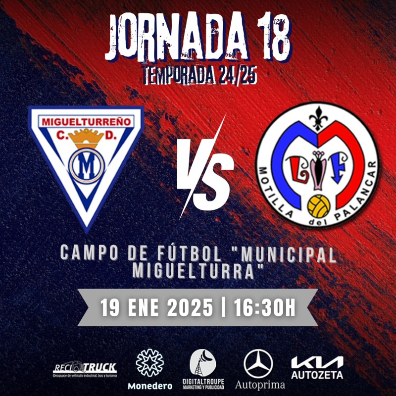 El Motilla C.F. se enfrenta al CD Miguelturreño este domingo, 19 de enero, a las 16:30 horas en el Campo Municipal de Miguelturra. Los motillanos, que ocupan el octavo lugar en la tabla, buscarán sumar una victoria ante un rival que actualmente está en la decimotercera posición con 18 puntos.