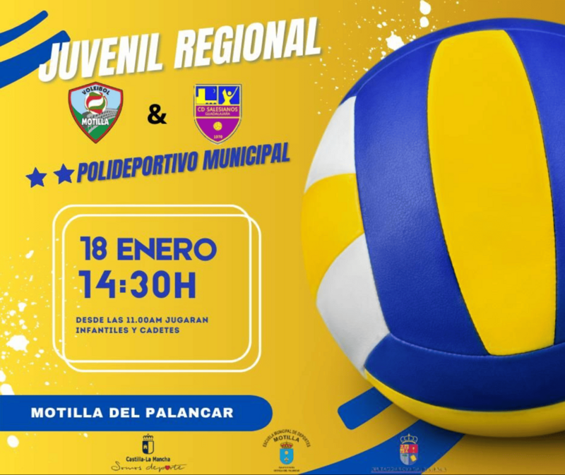 El Polideportivo Municipal de Motilla del Palancar será el escenario de varios encuentros el sábado 18 de enero. En la categoría Infantil Provincial, el equipo EMD Motilla Blanco recibirá al CV Salesianos Guada a las 13:30 horas. En la categoría Infantil Regional, la EMD Motilla jugará contra el CV Domingo Savio Guada a las 11:00 horas y contra el CV Salesianos Guada a las 12:45 horas.