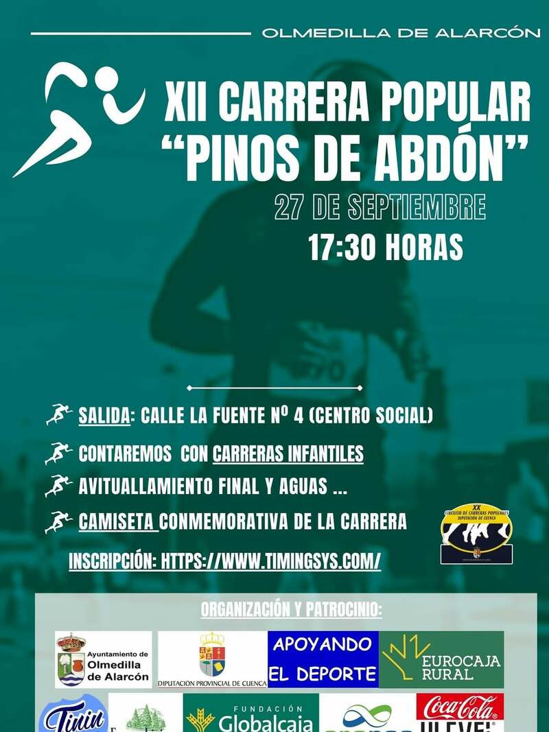 El sábado 27 de septiembre, Olmedilla de Alarcón acogerá la XII Carrera Popular Pinos de Abdón 2025, una prueba incluida en el XXI Circuito de Carreras Populares de la Diputación de Cuenca.