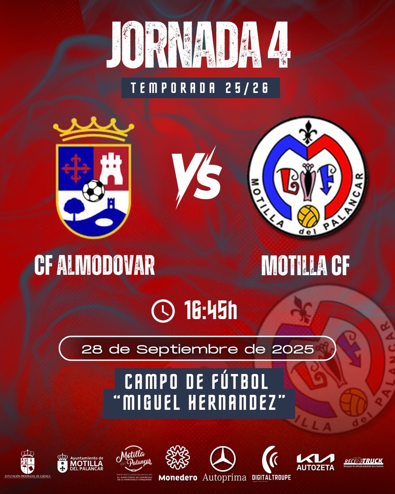 La jornada del domingo 28 de septiembre traerá uno de los duelos más exigentes para el Motilla CF, que visitará al CF Almodóvar en la 4ª jornada de liga.