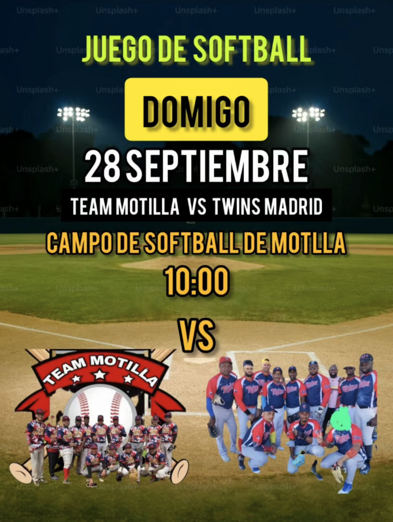 También el domingo 28 de septiembre, a las 10:00 horas, el Team Motilla disputará un nuevo partido de softbol frente a los Twins Madrid en el Campo de Softball de Motilla.