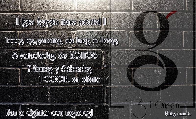 Te esperamos en Nº3 El Origen con nuestra terraza, ofertas en cubos de botellines, cubatas de las primeras marcas, cocteles, batidos... buena música y mejor ambiente.