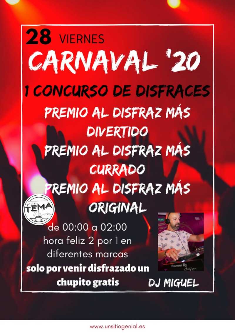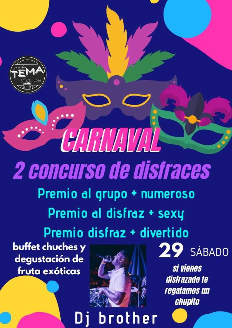 Este viernes 28 de Febrero, empiezan el Carnaval 2020 en Pub Tema Motilla con el "I Concurso de Disfraces".
