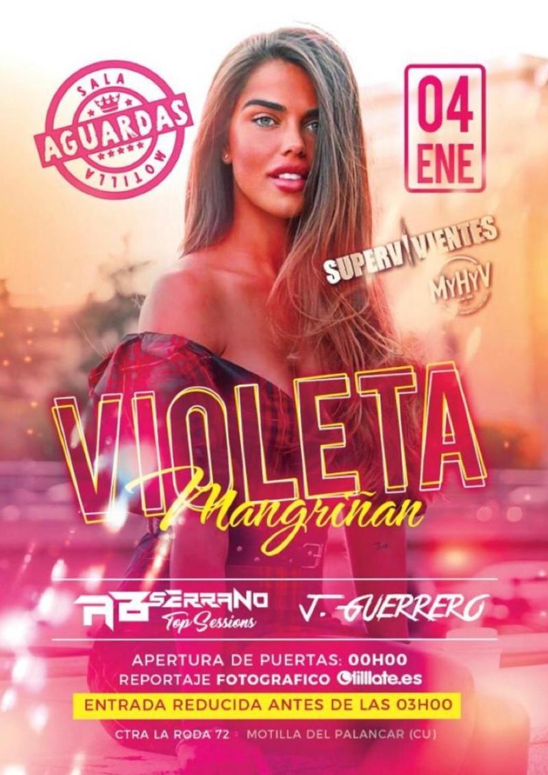 Este sábado en Sala Aguardas recibiremos la visita de Violeta Margriñan exconcursante de Supervivientes y MHYV.