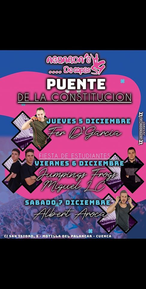 Este puente de la constitución en Pub Aguardas no tenemos viernes sexy pero tenemos un fiestón para cada día con: