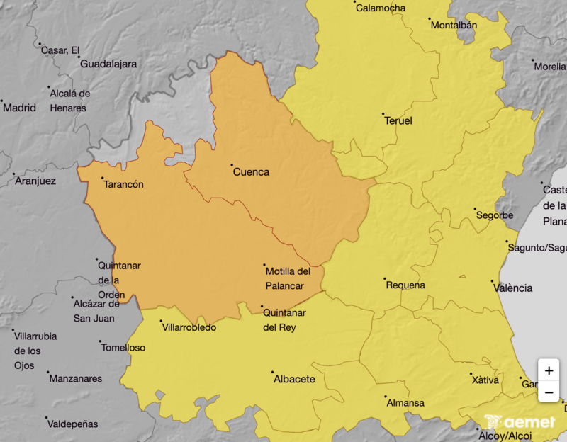 La decisión se toma tras los avisos de nivel naranja emitidos por AEMET, que afectan a las comarcas de La Mancha conquense y la Serranía, con precipitaciones acumuladas de hasta 30 mm en una hora. Además, se han decretado avisos amarillos por lluvias en la provincia de Albacete, en las zonas de Hellín-Almansa y La Mancha albaceteña, donde se podrían registrar 15 mm en una hora.