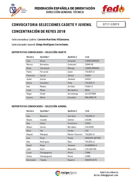 La orientadora del Club Deportivo Orientijote Ana Isabel Toledo Navarro, ha sido convocada con la selección Juvenil de la Federación Española de Orientación, para participar en ael Plan Nacional de Tecnificación Deportiva de la federación Española que se celebrará del 2 al 5 de enero en Toledo.