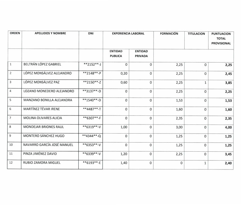 BANDO | Calificaciones provisionales bolsa socorrista