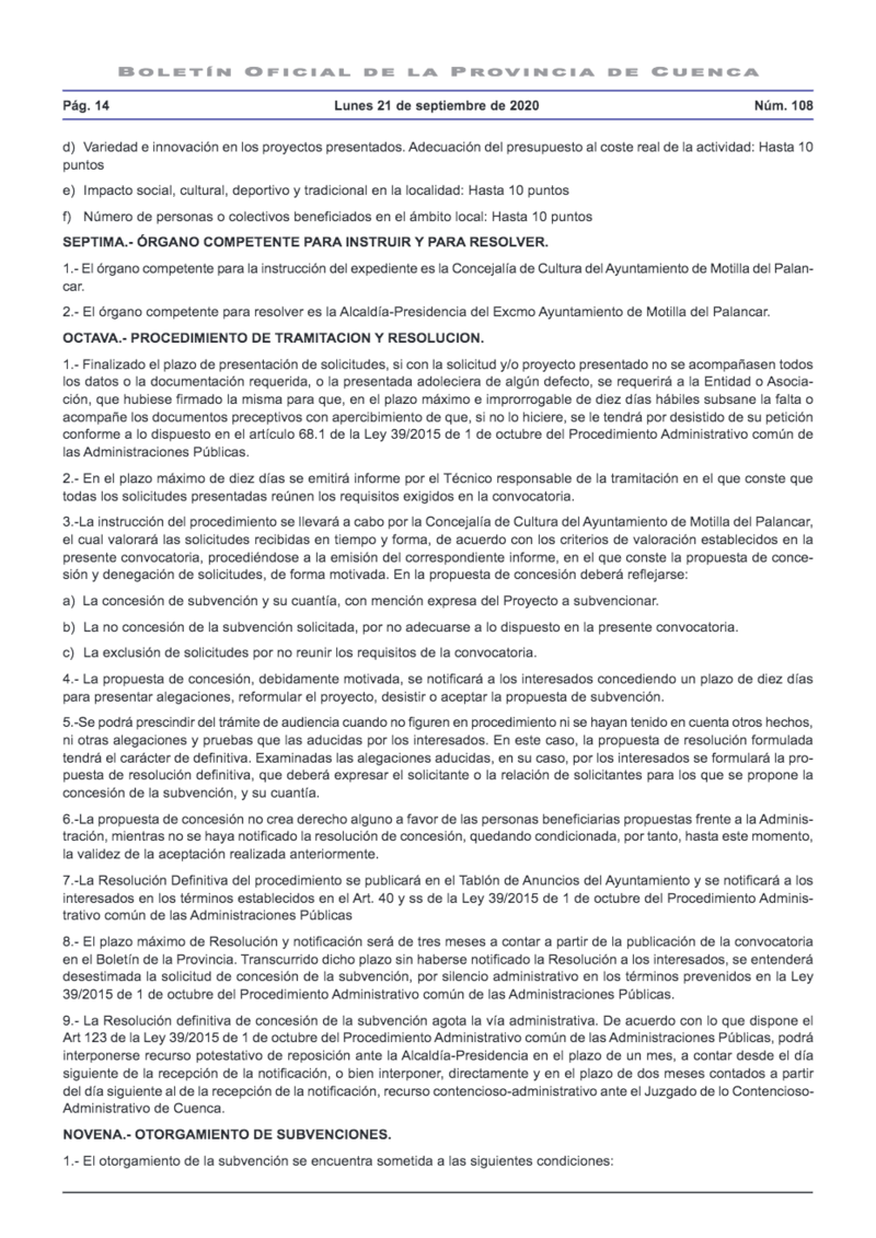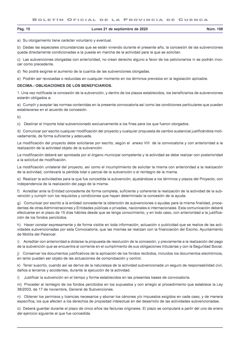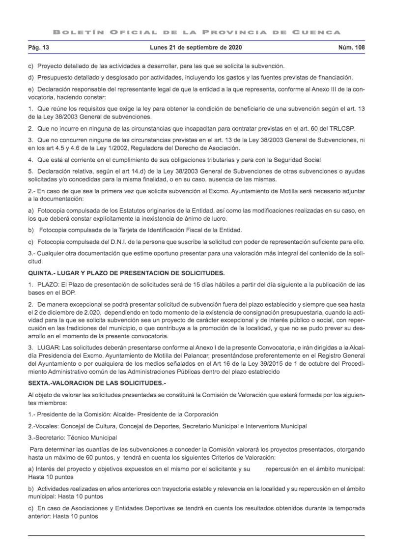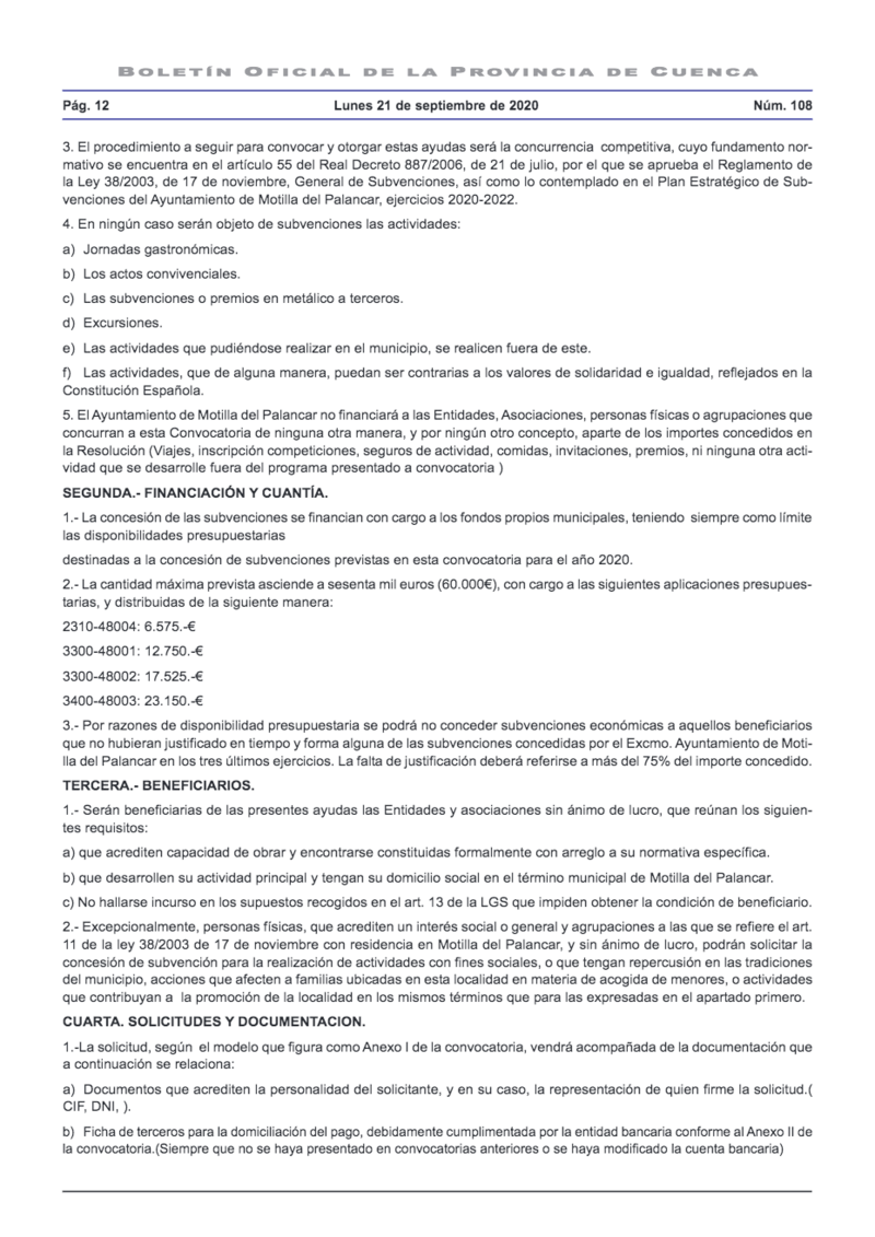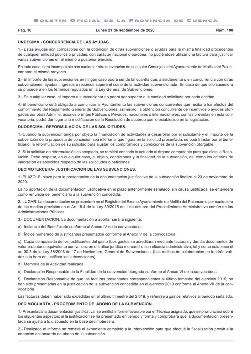El Ayuntamiento de Motilla del Palancar ha comunicado la convocatoria para la concesión de subvenciones de este año 2020.