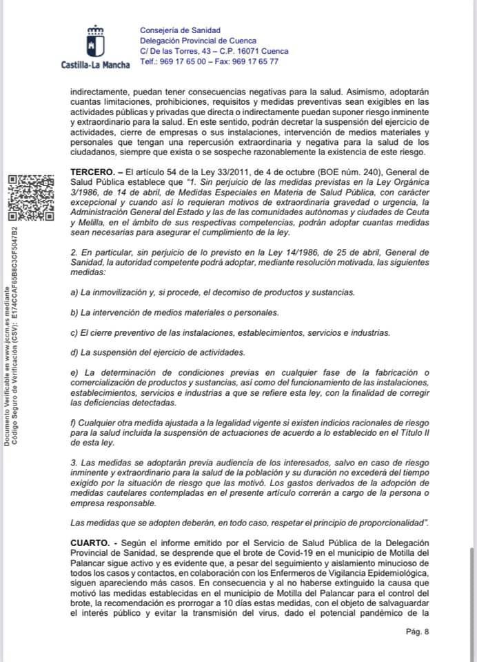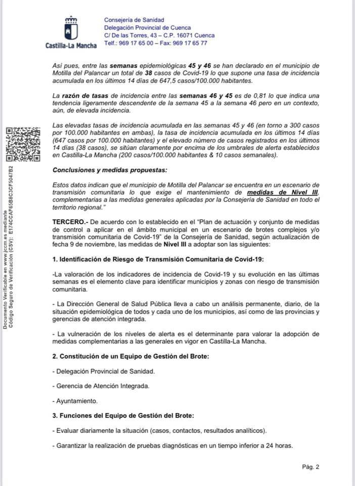 BANDO | Información de interés sobre el COVID 19 en Motilla del Palancar