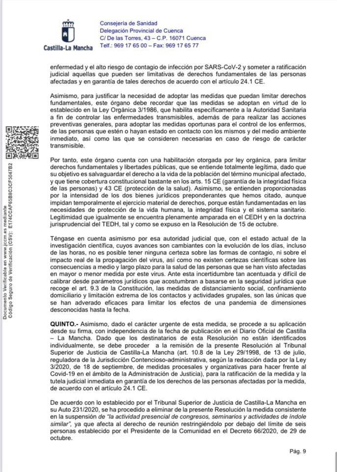 El motivo que explica la prórroga de ampliación de dichas medidas, es la alta tasa de incidencia acumulada en los últimos 14 días (647 casos por 100.000 habitantes) lo que nos lleva a un escenario de trasmisión comunitaria. Para revertir esta situación será necesario reducir los casos hasta quedar por debajo de los 200 casos por 100.000 habitantes. Umbral de alerta establecido en Castilla- La Mancha.