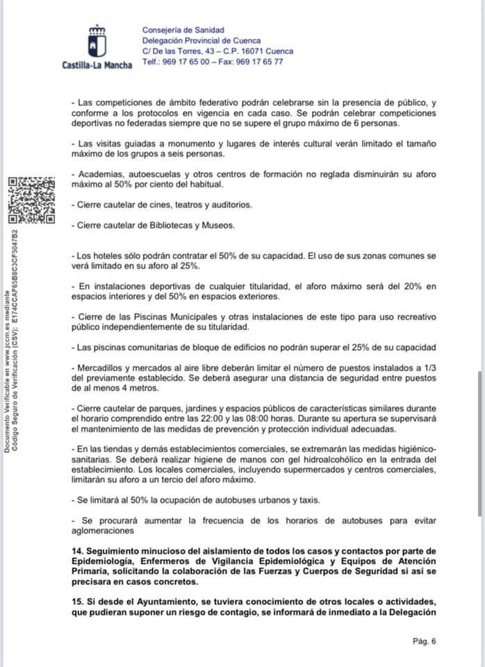 Rogamos se cumplan escrupulosamente todas y cada una de las medidas marcadas en dicha resolución que les adjuntamos, haciendo especial hincapié en que se respete la limitación de los encuentros sociales fuera del grupo de convivencia estable.