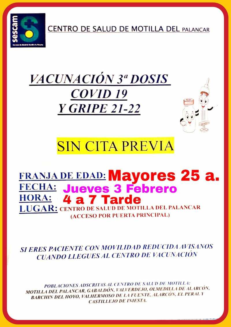 El Centro de Salud de Motilla continúa está semana con su campaña de vacunación de la tercera dosis contra la Covid y la gripe.
