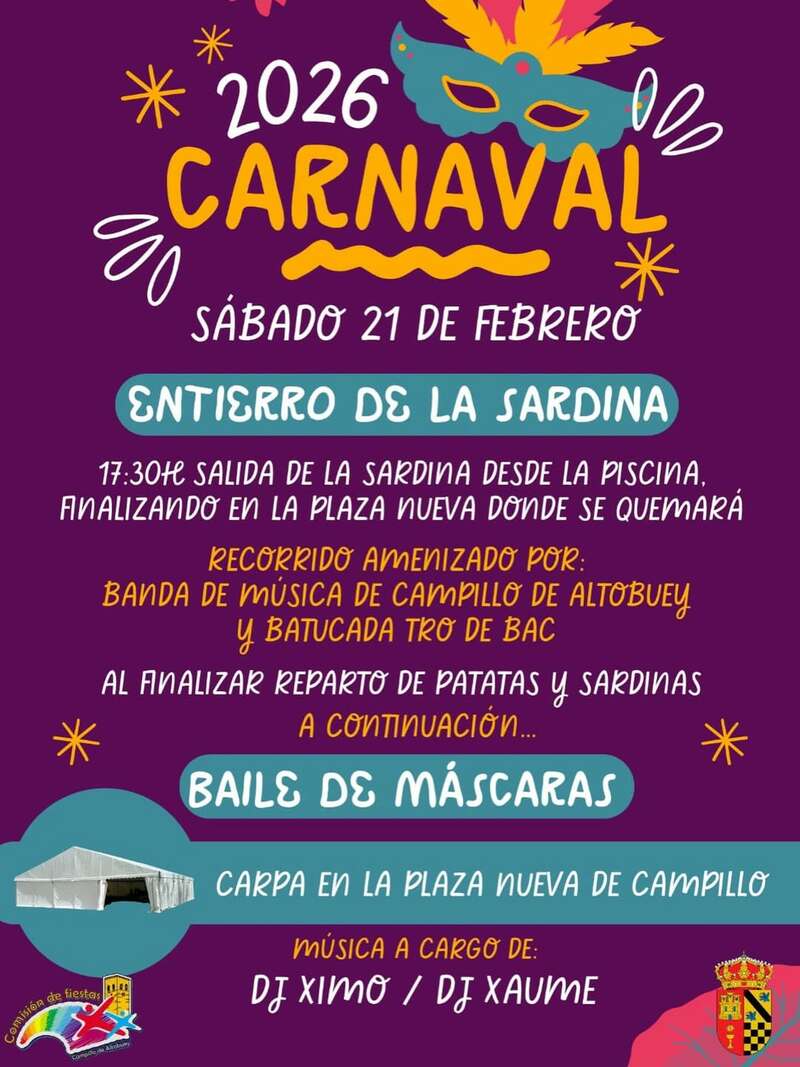 También el sábado 21, Campillo de Altobuey celebrará el tradicional Entierro de la Sardina. A las 17:30 horas, la comitiva saldrá desde la piscina y finalizará en la Plaza Nueva, donde se procederá a la quema. El recorrido estará amenizado por la Banda de Música de Campillo de Altobuey y la batucada Tro de Bac.