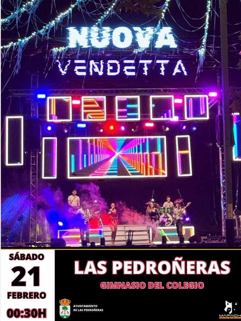El sábado por la noche, Las Pedroñeras pondrá el broche final al Carnaval 2026 con una gran velada de baile. A las 00:30 horas, en el Gimnasio del Colegio, actuará la orquesta “Nuova Vendetta”, ofreciendo un recorrido por grandes temas de ahora y de siempre.