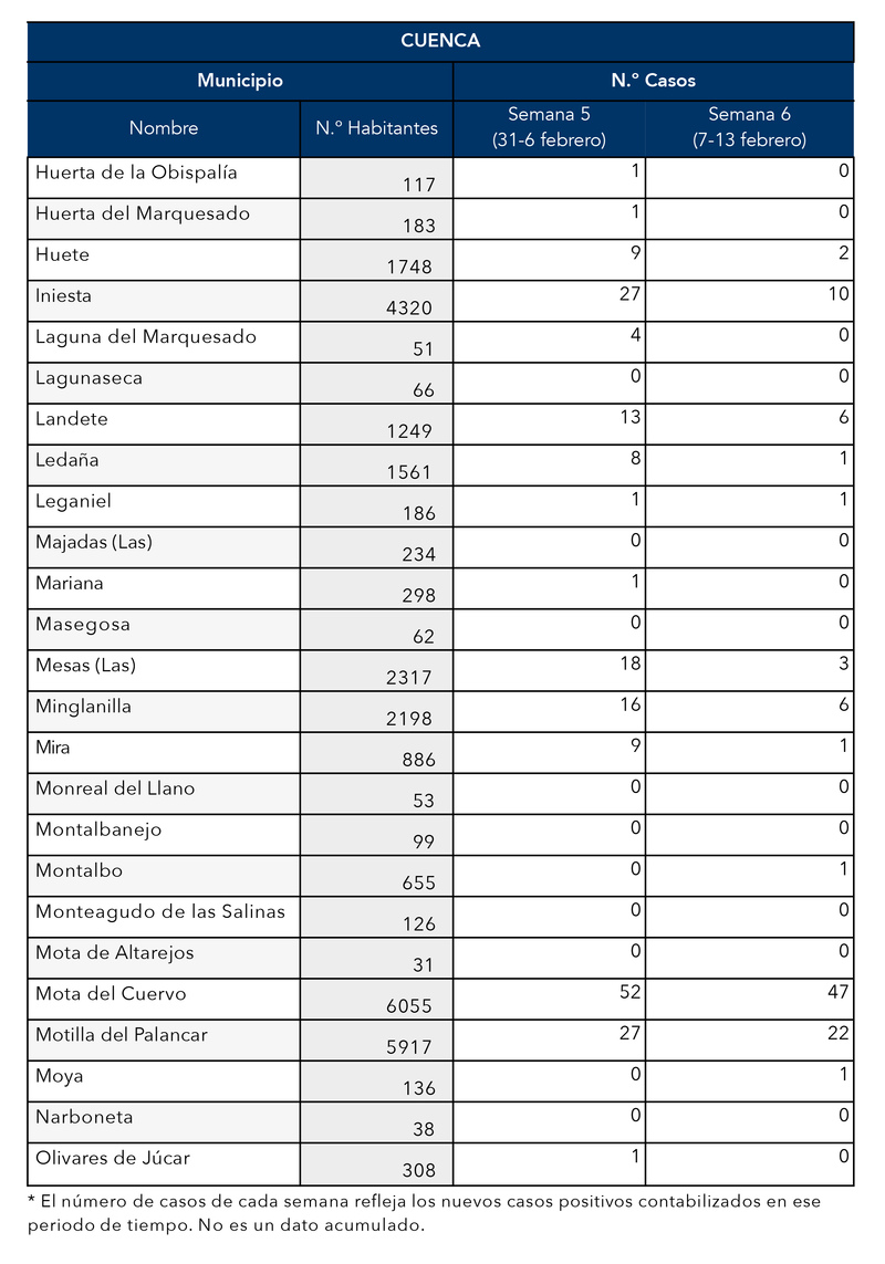 Casos positivos por COVID en Motilla del Palancar y municipios de Cuenca actualizados