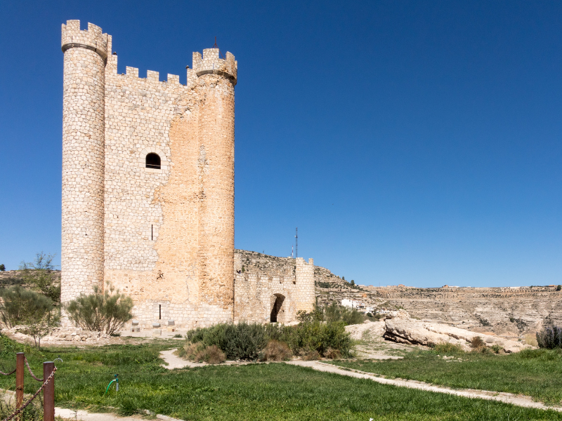 La primera parada es el castillo de Alcalá del Júcar, situado en un espectacular cerro que domina la Hoz del Júcar. Este castillo, declarado Bien de Interés Cultural, tiene sus orígenes en la época islámica y ha sido testigo de diversas etapas históricas, desde los íberos hasta los cristianos. La fortaleza presenta una torre del homenaje, de planta pentagonal, restaurada en el siglo XV, que es símbolo del poder señorial de la época.