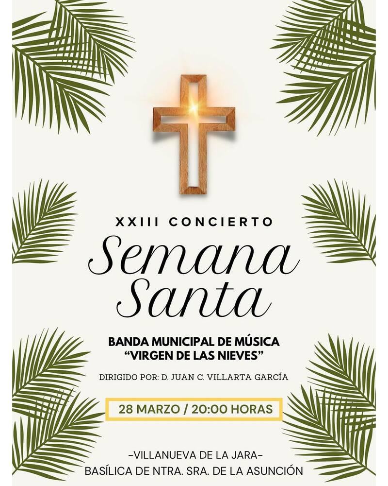La programación musical continuará el sábado 28 de marzo a las 20:00 horas en Villanueva de la Jara, donde la Basílica de Nuestra Señora de la Asunción acogerá el XXIII Concierto de Semana Santa.