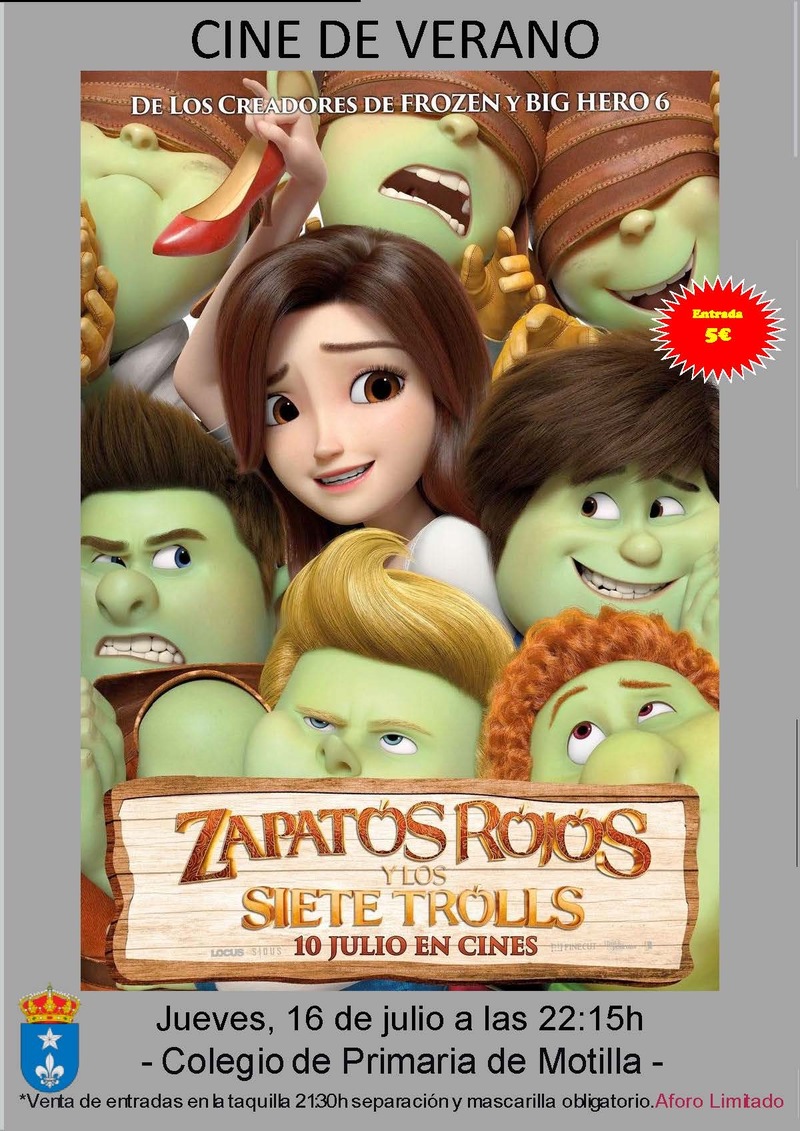 Mañana Jueves 16 de Julio en el patio del Colegio de Primaria tendrá lugar la retransmisión de la película "Zapatos Rojos y los Siete Trolls".