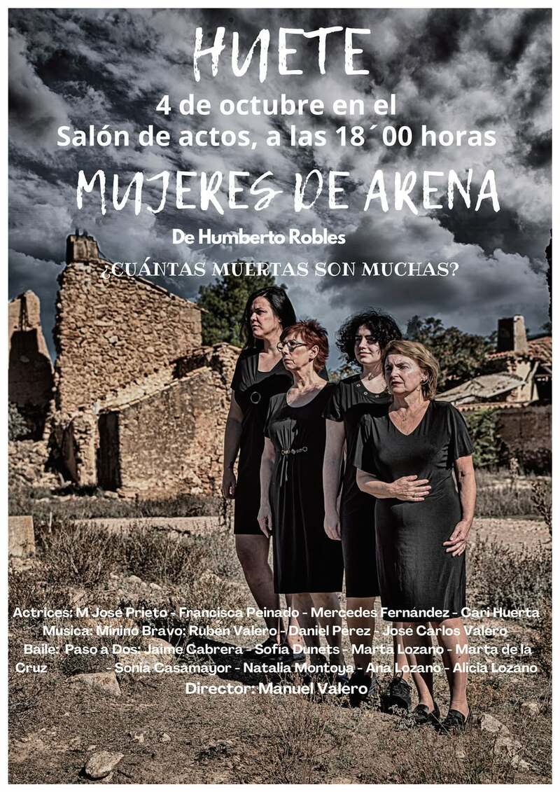 El sábado 4 de octubre, a las 18:00 horas en el Salón de Actos del Ayuntamiento, se representa la obra “Mujeres de Arena” de Humberto Robles, dirigida por Manuel Valero, con entrada gratuita.