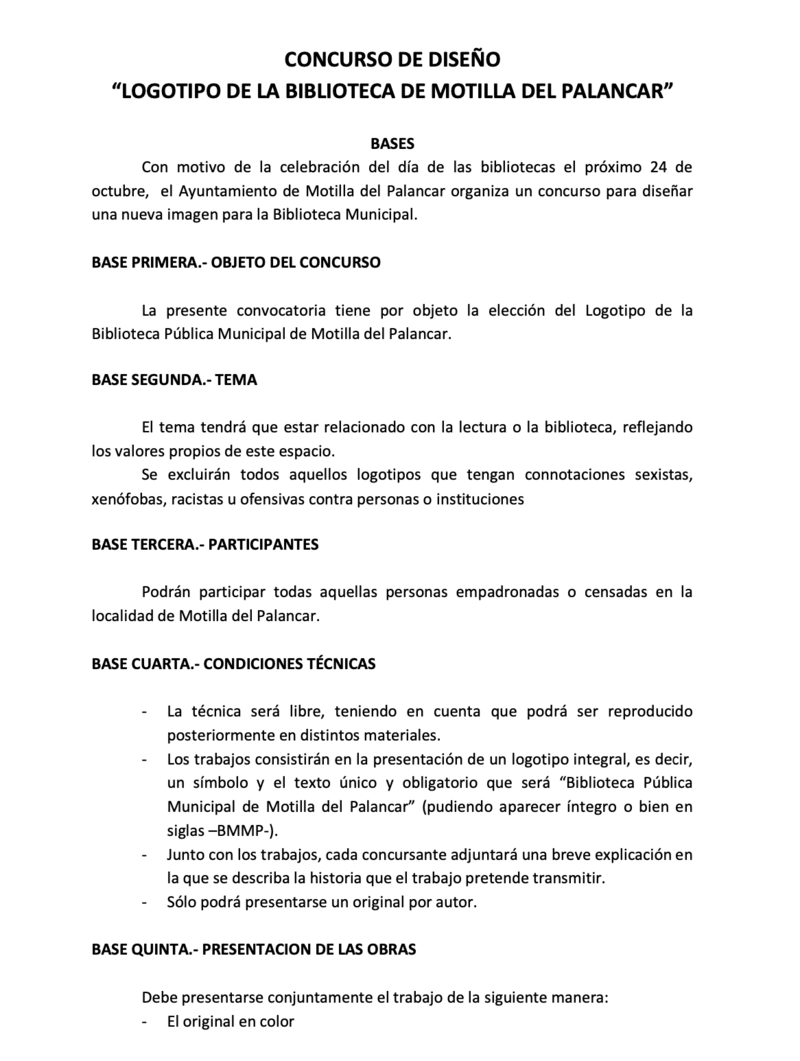 Con motivo de la celebración del día de las bibliotecas el próximo 24 de octubre, el Ayuntamiento de Motilla del Palancar organiza un concurso para diseñar una nueva imagen para la Biblioteca Municipal.