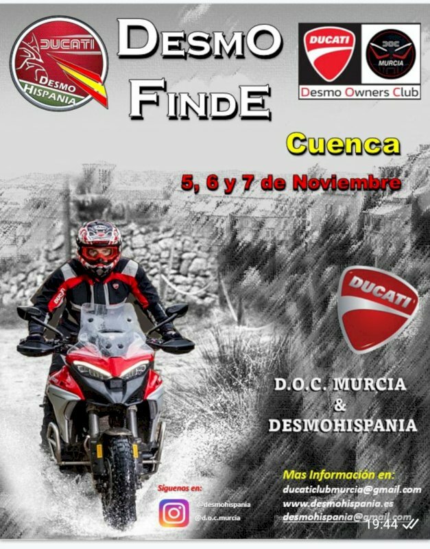 Los clubes DesmoHispania -de Madrid y alrededores- y Desmo Owners Club -de Murcia- han elegido la provincia conquense para la quedada anual de interclubes 2021 de tal forma que durante los días 5, 6 y 7 de noviembre, circularán por tierras conquenses para compartir su pasión por las motos y disfrutar del paisaje.