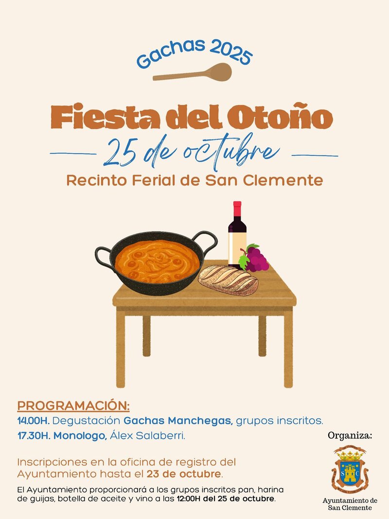 El Recinto Ferial de San Clemente celebrará este sábado 25 de octubre la Fiesta del Otoño 2025, que finalmente se trasladará al E.M.P.E. “Felipe VI” por previsión de lluvias.