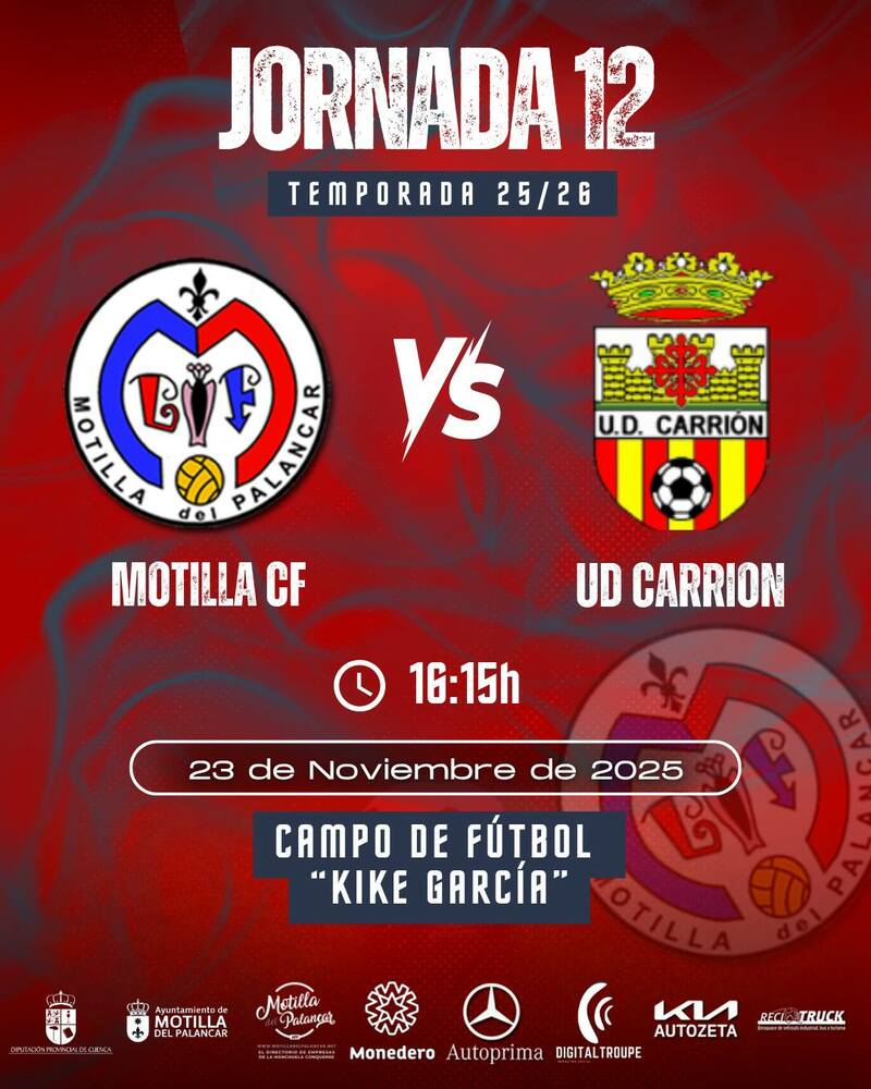 El Motilla CF vuelve al Campo de Fútbol Kike García para disputar su duodécimo partido de la temporada frente a la UD Carrión. El encuentro se celebrará el 23 de noviembre a las 16:15 horas, en un duelo exigente ante un rival situado por encima en la clasificación. Tras la derrota por la mínima (1-0) frente al Sporting de Alcázar en la jornada anterior, el equipo afronta este compromiso con intención de sumar tres puntos fundamentales para mantenerse alejado de los puestos bajos.