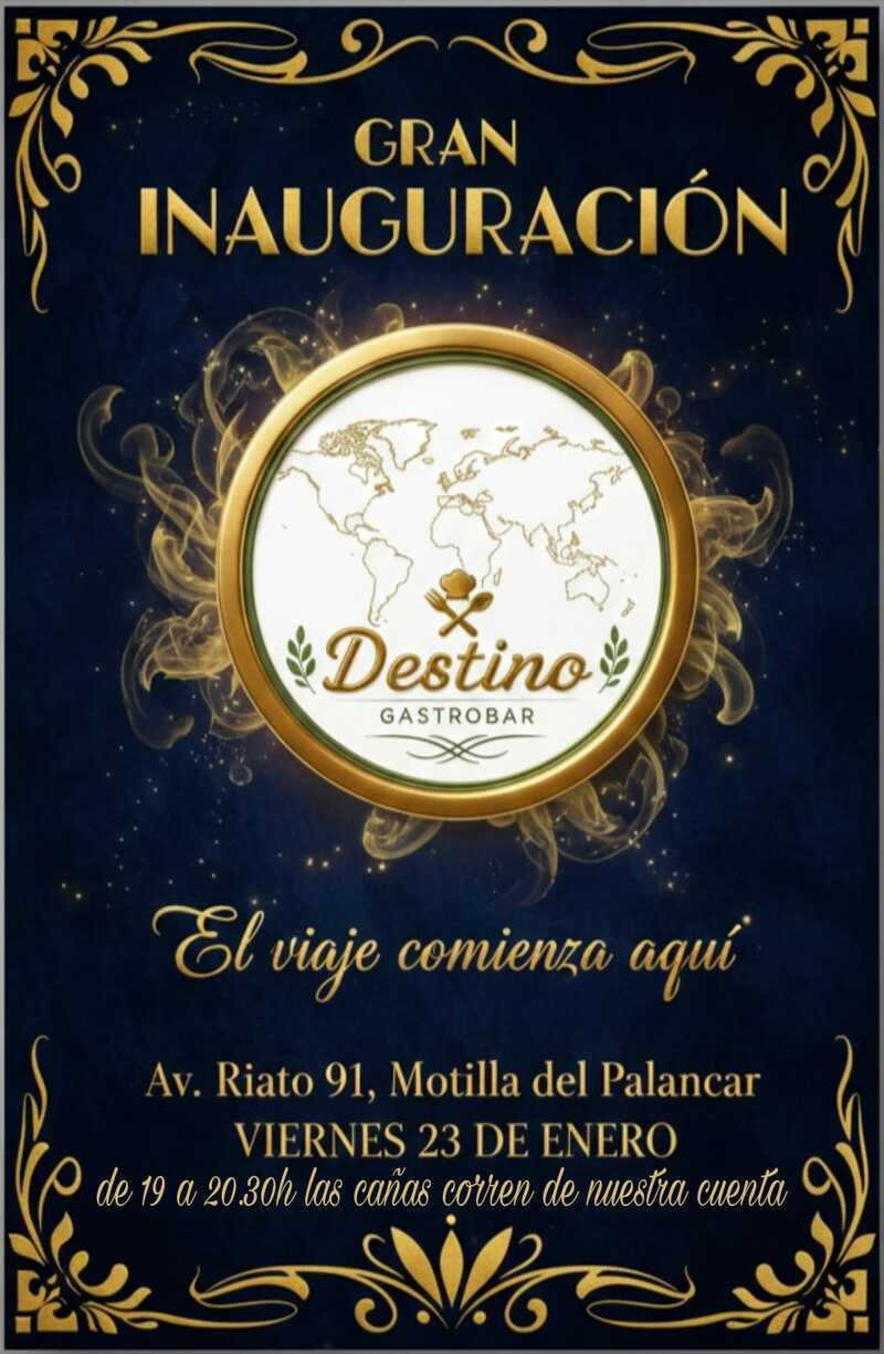 Desde Destino Gastrobar os animan a pasaros el viernes 23 de enero, de 19:00 a 20:30 horas, para tomar unas cañas de inauguración y compartir el inicio de esta nueva aventura en Motilla del Palancar.