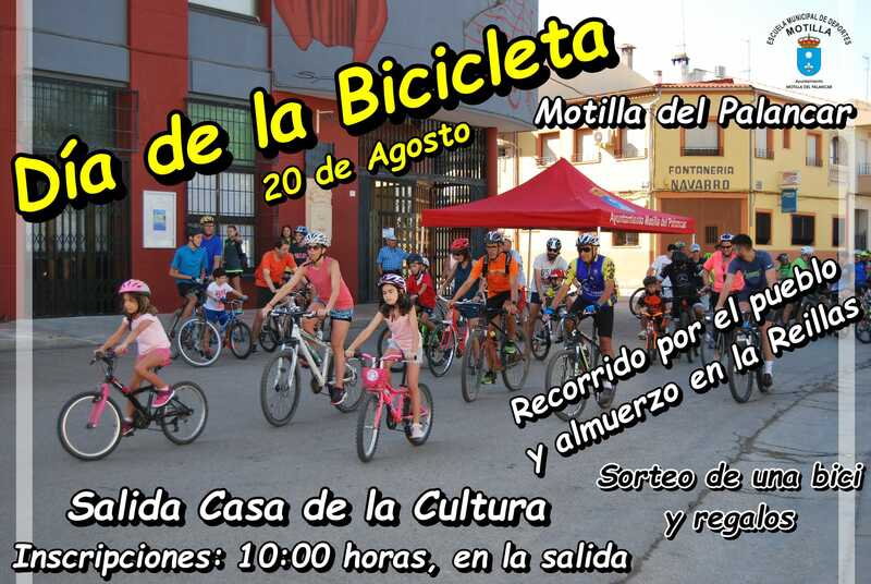 El próximo domingo, 20 de agosto, se celebra el Día de la Bicicleta en Motilla del Palancar. La actividad comenzará a las 10:00h desde la Casa de la Cultura y consistirá en un recorrido por el municipio. El recorrido tendrá una duración aproximada de dos horas y finalizará en el paraje de Las Reillas, donde se realizará un almuerzo.