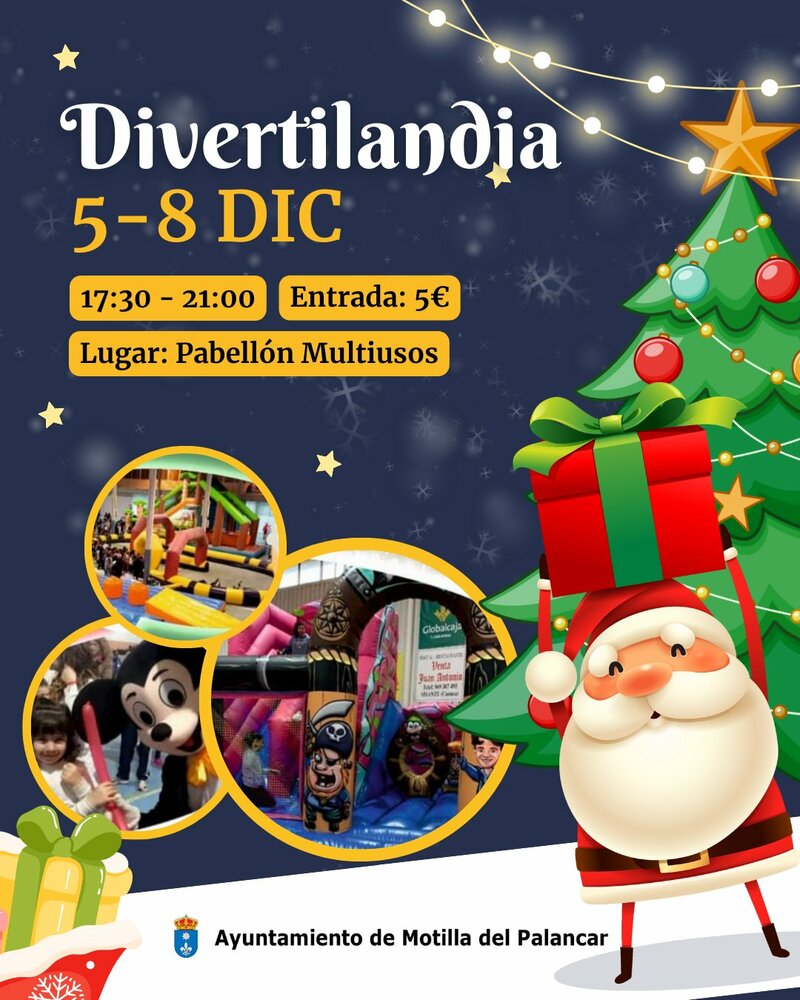 El Pabellón Multiusos de Motilla del Palancar volverá a transformarse en un gran espacio de ocio para los más pequeños con la celebración de Divertilandia. Esta edición tendrá lugar del 5 al 8 de diciembre, en horario de 17:30 a 21:00 horas, ofreciendo diversas actividades infantiles adaptadas para todas las edades.