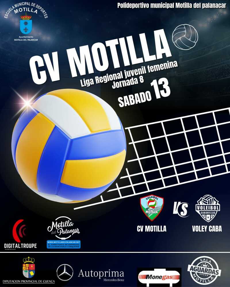 En voleibol cadete liga regional, el EMD Motilla se enfrentará al CV Iniesta el sábado 13 de diciembre, a las 11:00 horas, en el Polideportivo Municipal de Motilla del Palancar.
