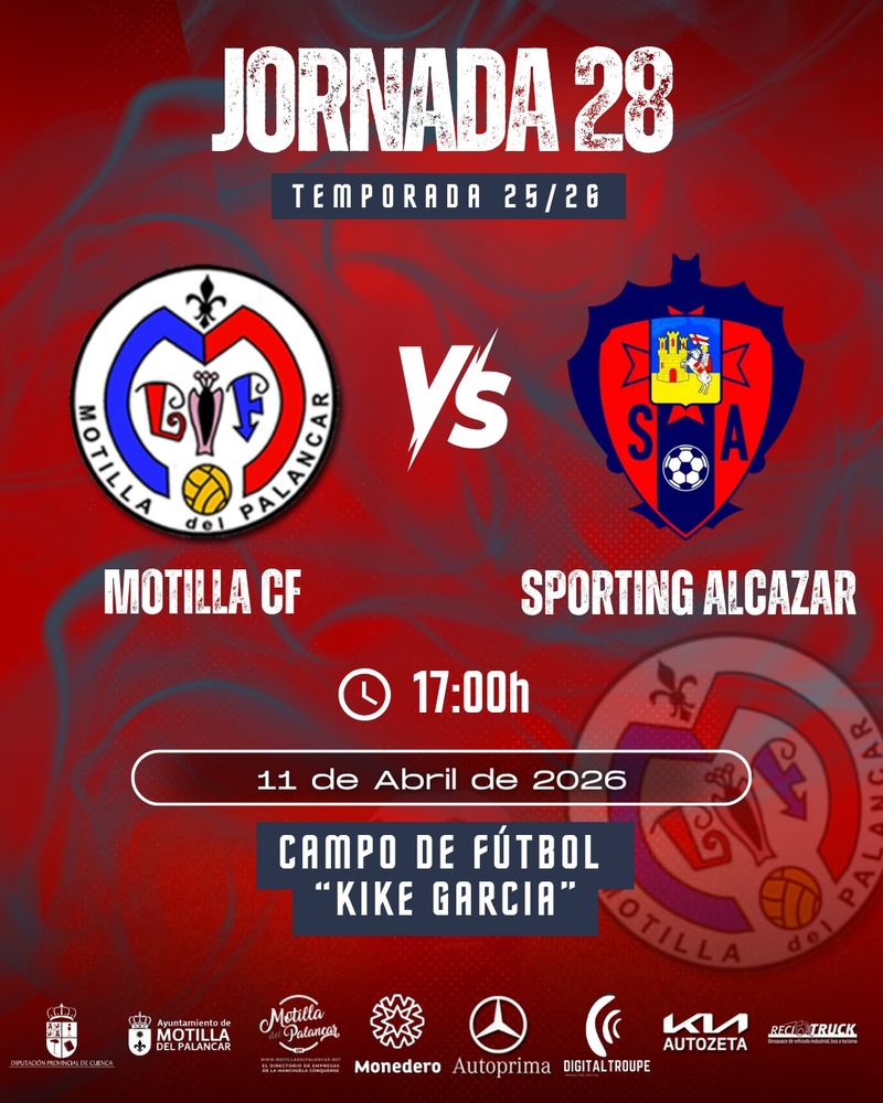 El Motilla CF vuelve a jugar en casa en el Campo de Fútbol “Kike García” tras la importante victoria conseguida en La Roda. El equipo recibirá este 11 de abril al Sporting Alcázar, en un partido clave para seguir sumando puntos y alejarse de la zona baja de la clasificación.