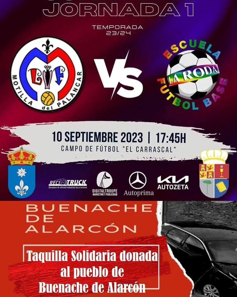 Bajo el lema "ESTE PARTIDO, LO JUGAMOS TODOS", el club convoca a todos los aficionados y simpatizantes a que se acerquen al estadio El Carrascal este Domingo 10 de Septiembre a las 17:45 horas. No sólo para apoyar al equipo en su primer partido de la liga en casa sino también para aportar su grano de arena en la ayuda a los vecinos de Buenache.