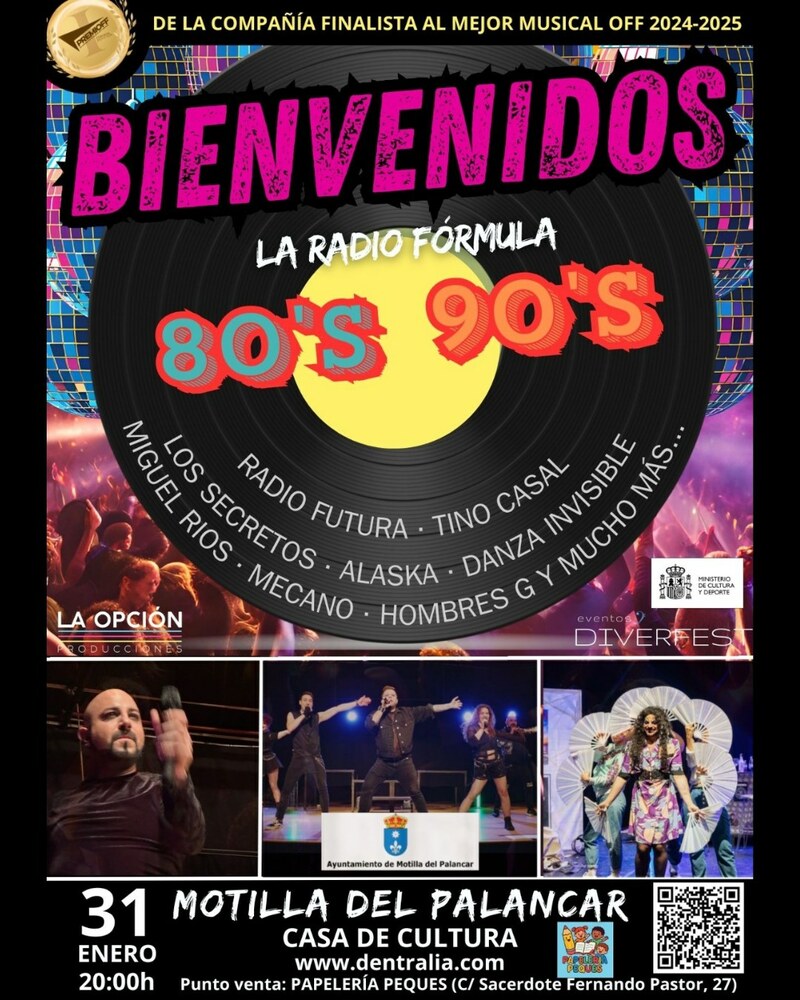 Motilla del Palancar acoge el próximo sábado 31 de enero el musical “Bienvenidos. La radio fórmula 80’s 90’s”, un espectáculo que recupera los grandes éxitos musicales de dos décadas clave de la historia reciente. La cita será a las 20:00 horas en la Casa de Cultura.