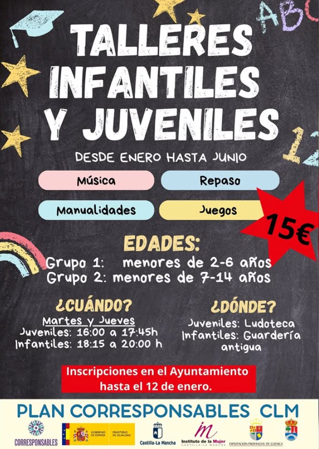 Los talleres juveniles se celebrarán de 16:00 a 17:45 horas en la Ludoteca, mientras que los talleres infantiles tendrán lugar de 18:15 a 20:00 horas en la antigua guardería municipal. El precio establecido es de 15 euros mensuales.