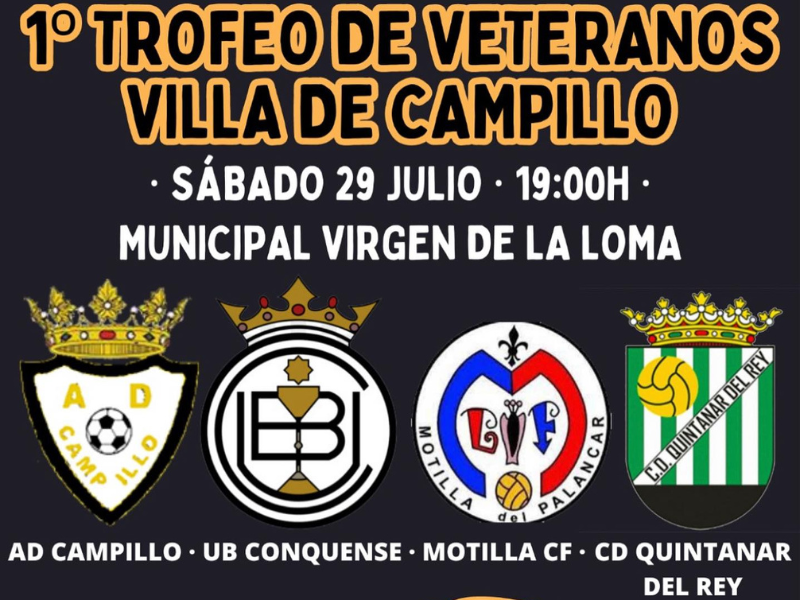 No puedes perderte el primer Trofeo de fútbol de Veteranos Villa de Campillo. Recuerda, la cita es hoy 29 de julio, a partir de las 19:00h, en el Campo Municipal Virgen de la Loma.