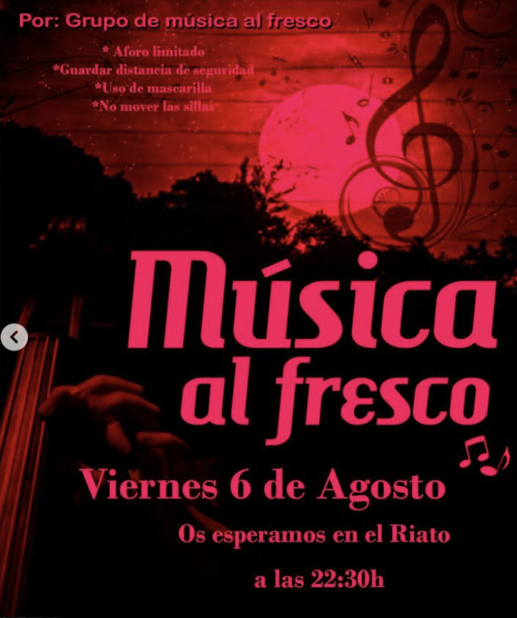 El Riato también contará con `Música al fresco´ a las 22:30H el mencionado viernes 6.