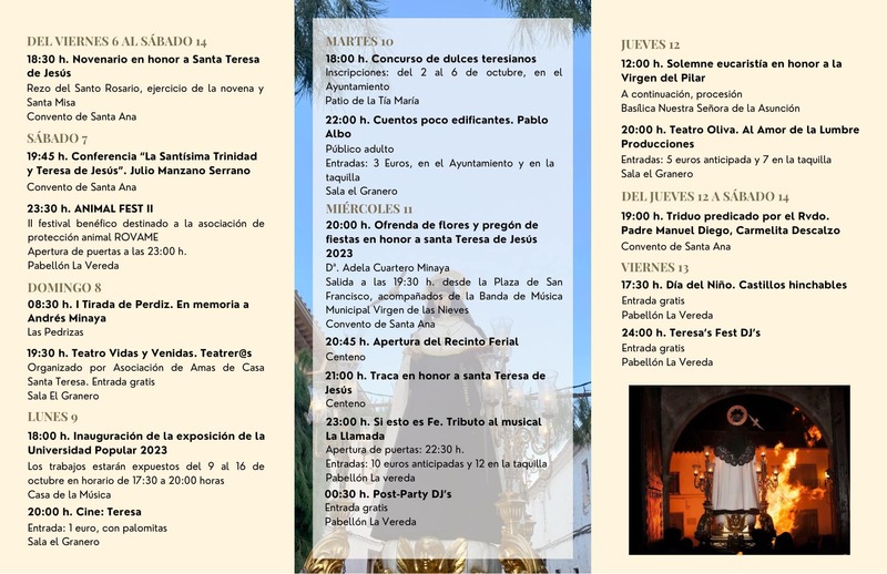 Programa de las Fiestas en Honor a Santa Teresa de Jesús