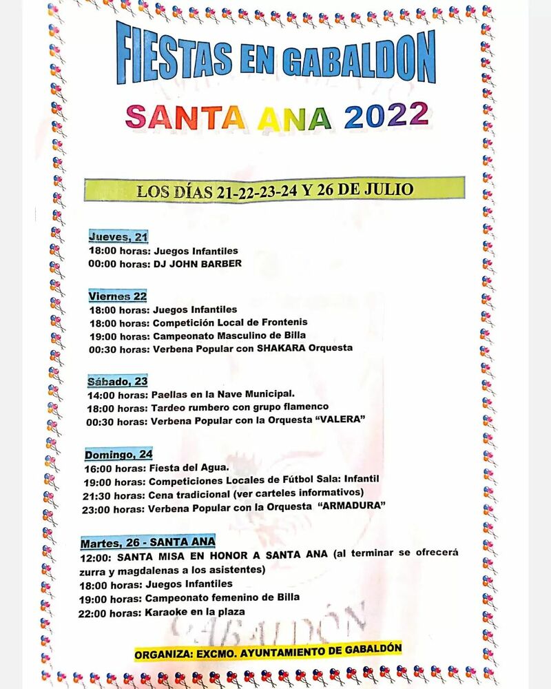 Ya está preparado todo en Gabaldón para celebrar las fiestas en Honor a Santa Ana. Estas fiestas son las primeras de la comarca y dan el pistoletazo de salida a un gran número de festejos que se celebran en la Manchuela Conquense a lo largo de todo el verano.