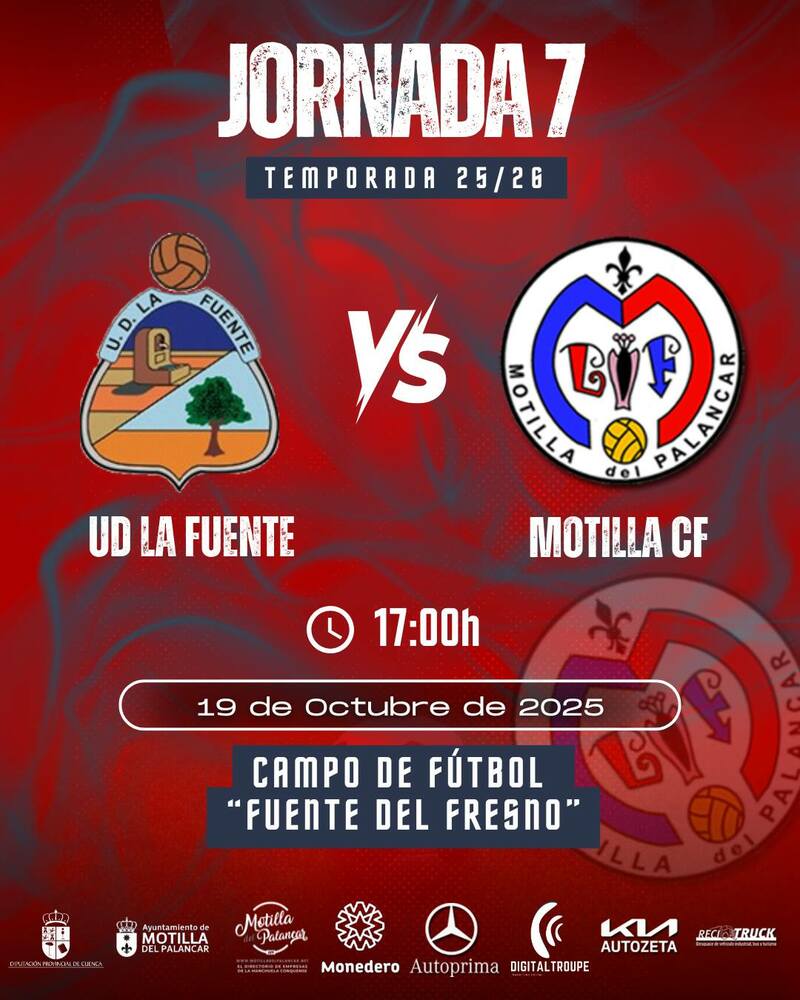 El Motilla CF se desplazará este sábado 19 de octubre hasta Fuente del Fresno para enfrentarse a la UD La Fuente a las 17:00 horas en el Campo de Fútbol “Fuente del Fresno”. Será el séptimo partido de la temporada para los motillanos, que llegan con la intención de cambiar la dinámica y sumar tres puntos tras la derrota en el derbi frente a la AD Campillo por 3-0 el pasado 11 de octubre.